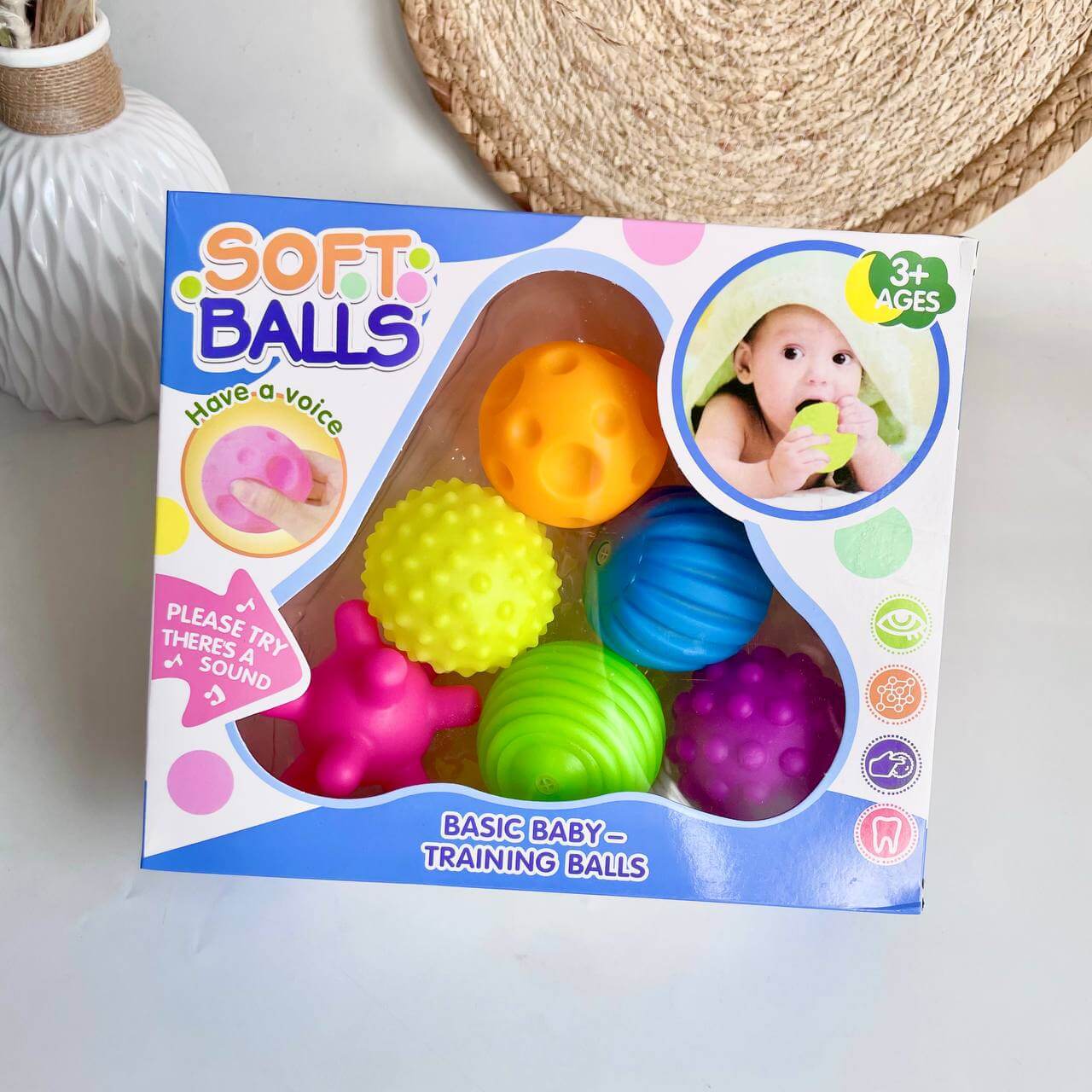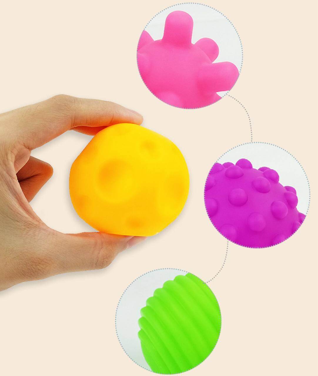 М'ячикі мають приємну оку гаму кольорів. Виконані з силікону який не має запаху, абсолютно безопасноий для дітей,.