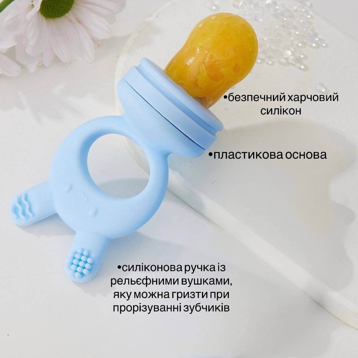 Зручний та безпечний ніблер допоможе малюку знайомитися з новими смаками без ризику вдавитися. Сітка виготовлена з м’якого харчового силікону — він гігієнічний, легко миється та не вбирає запахи. Ергономічна ручка також силіконова, із рельєфними вушками, які можна гризти — це додатково масажує ясна та полегшує дискомфорт під час прорізування зубів.