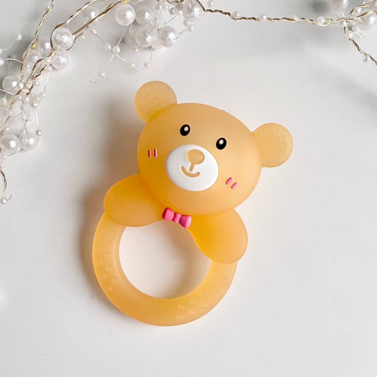 Миле силіконове брязкальце-прорізувач у формі ведмедика стане улюбленою іграшкою малюка з перших місяців життя. Виготовлений із м’якого, безпечного для дітей харчового силікону, він допомагає полегшити неприємні відчуття під час прорізування зубів.