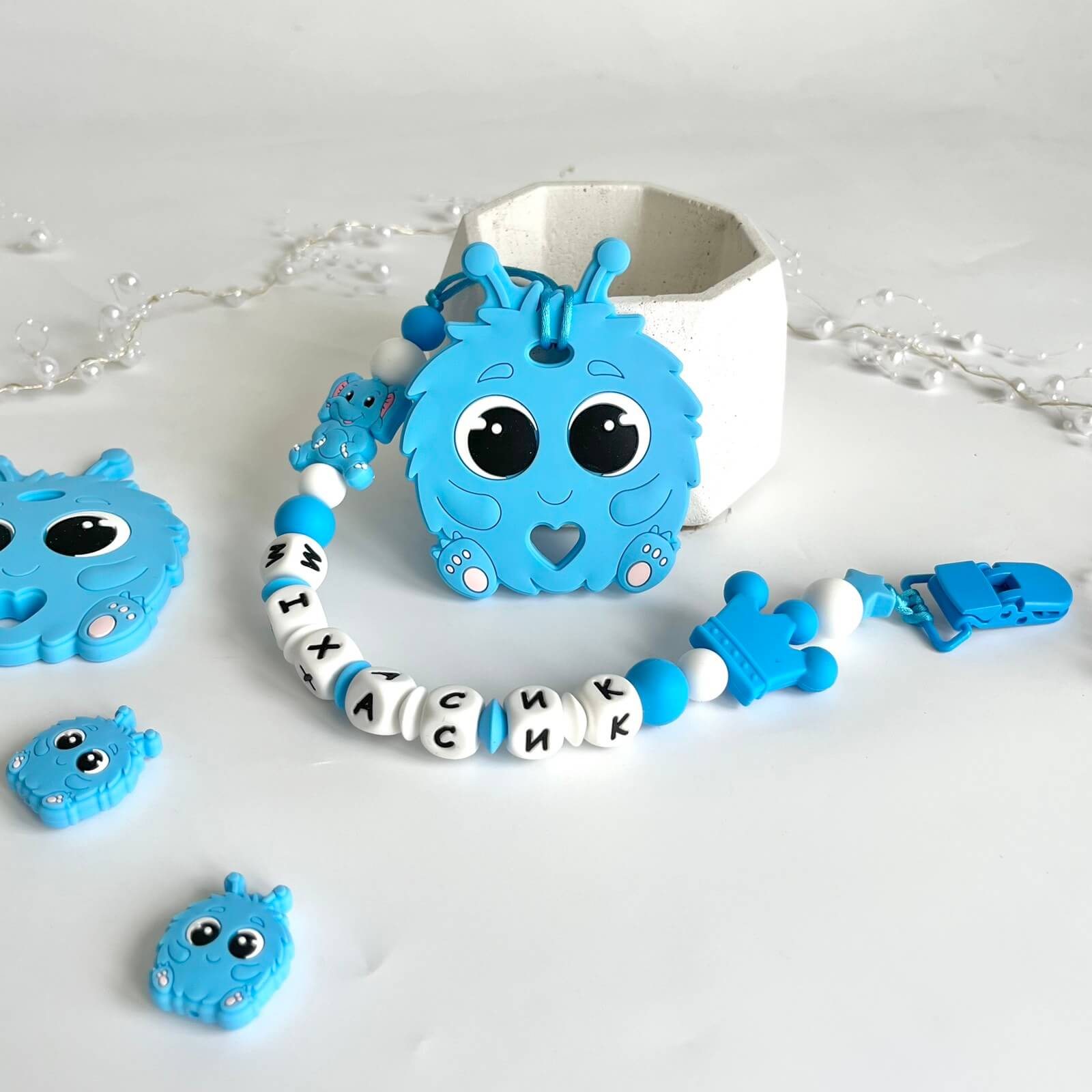Пухнастик (блакитний), силіконовий прорізувач із силікону. Силіконові прорізувачі не мають шкідливих речовин, що підтверджують сертифікати якості.
