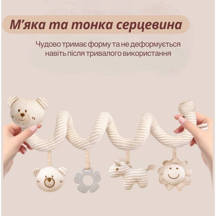 Розвиваюча іграшка-спіраль Ведмедик (бежева) на візочок, ліжечко, люльку, автокрісло
