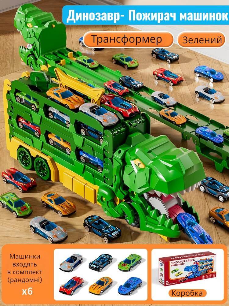 Игрушка-трек Динозавр (зеленый) + 6 гоночных машинок