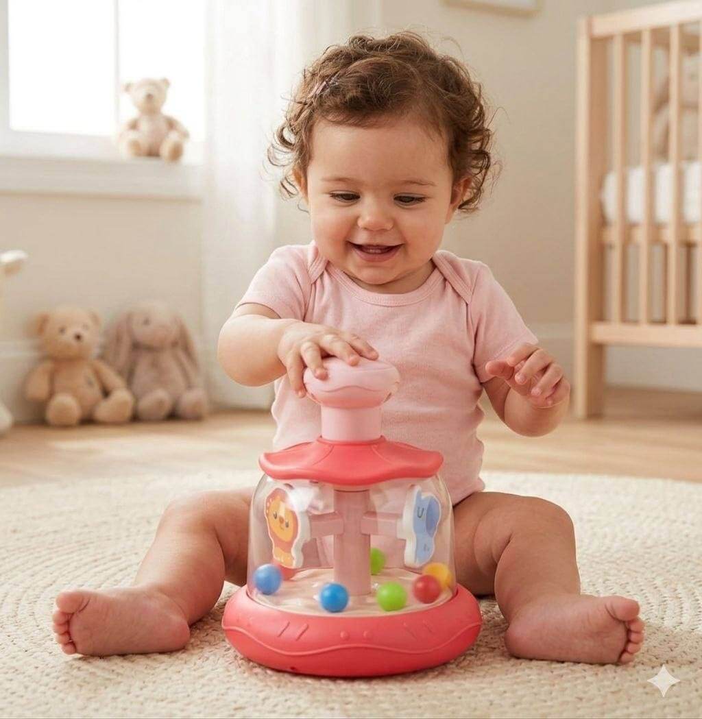 Благодаря глянцевой прозрачной купольной конструкции ребенок прекрасно видит, как вращаются фигурки, что стимулирует зрительное восприятие, концентрацию и координацию движений.