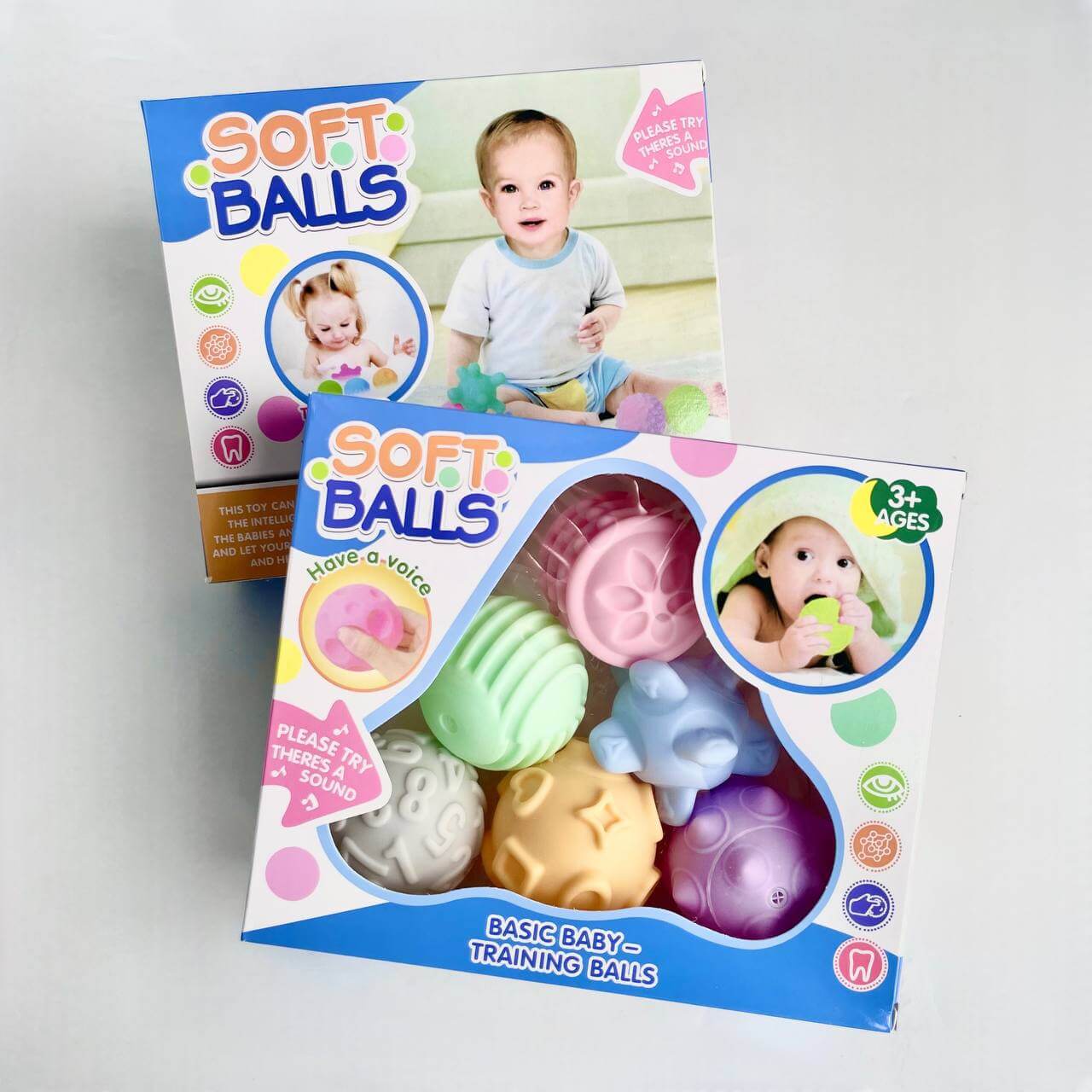 Мячики имеет приятную глазу гамму цветов. Выполнены из силикона который не имеет запаха, абсолютно безопасноый для детей, .