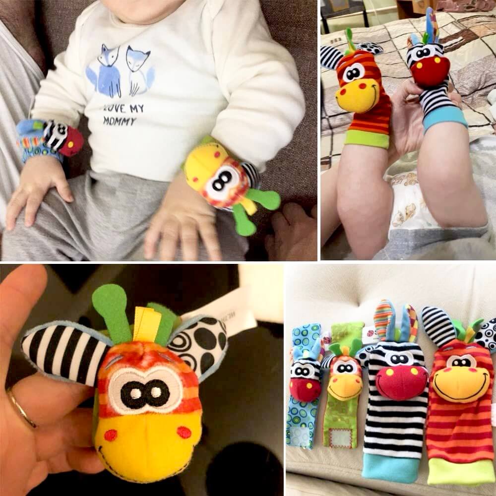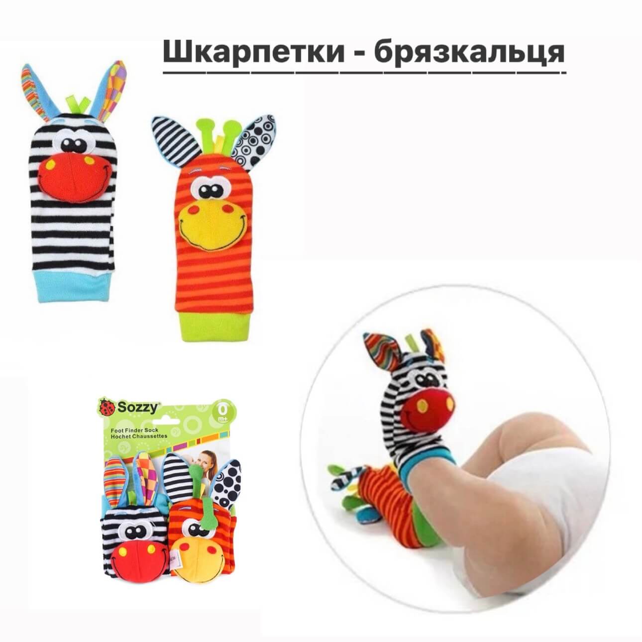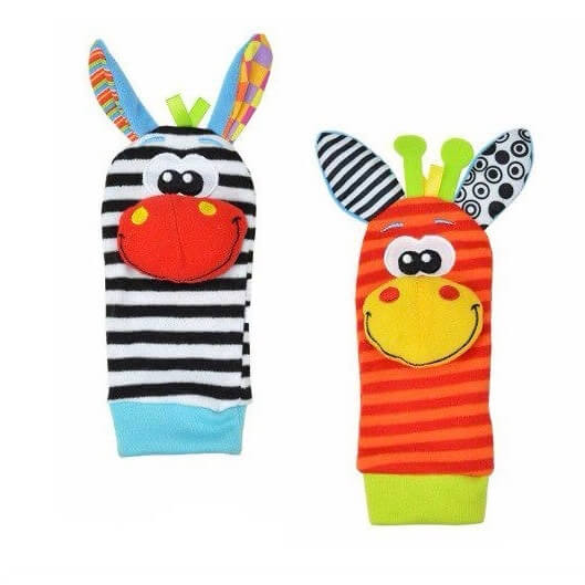 Носки погремушки, тактильные игрушки с животными, развивающие для малышей, шуршат и звенят (набор из 2шт.)