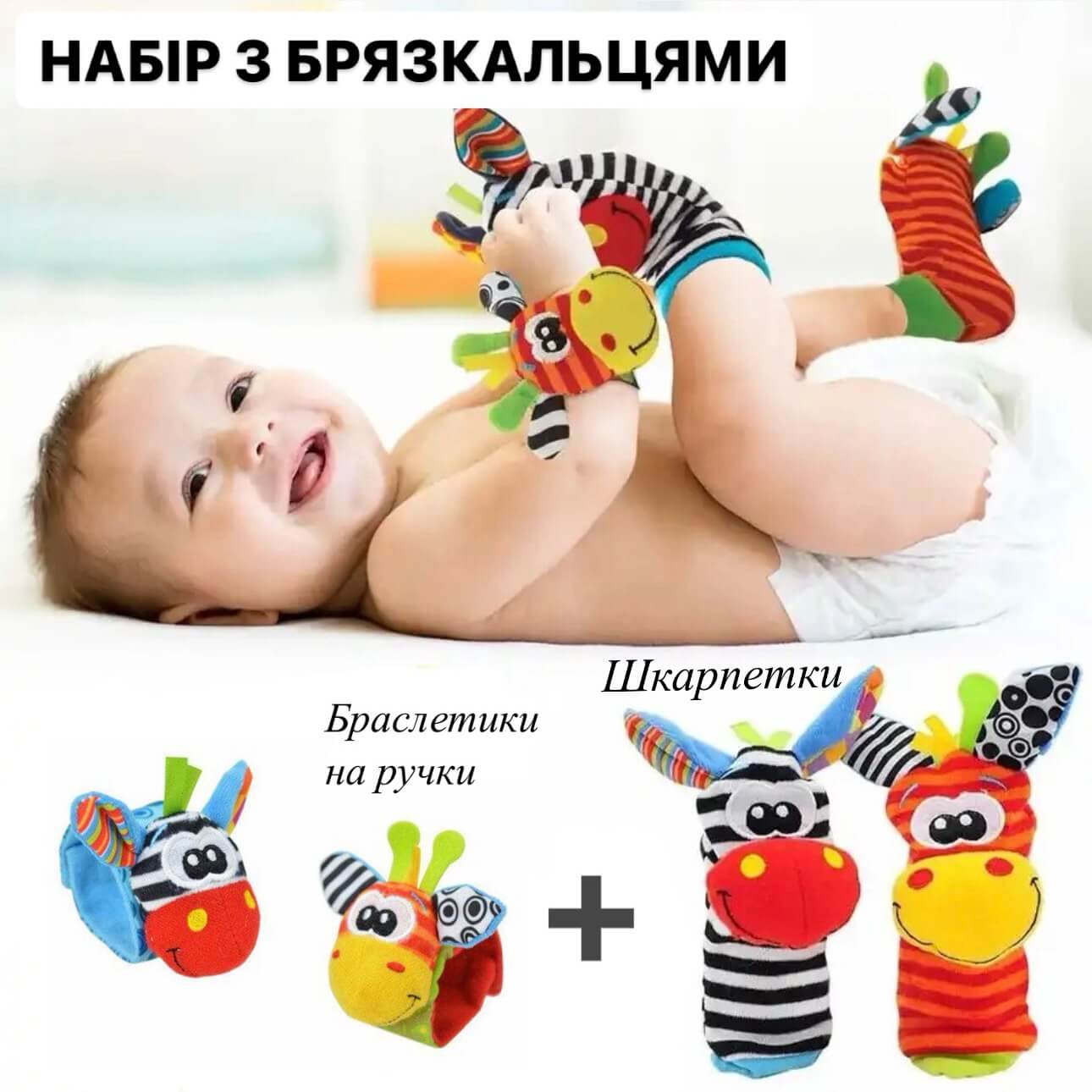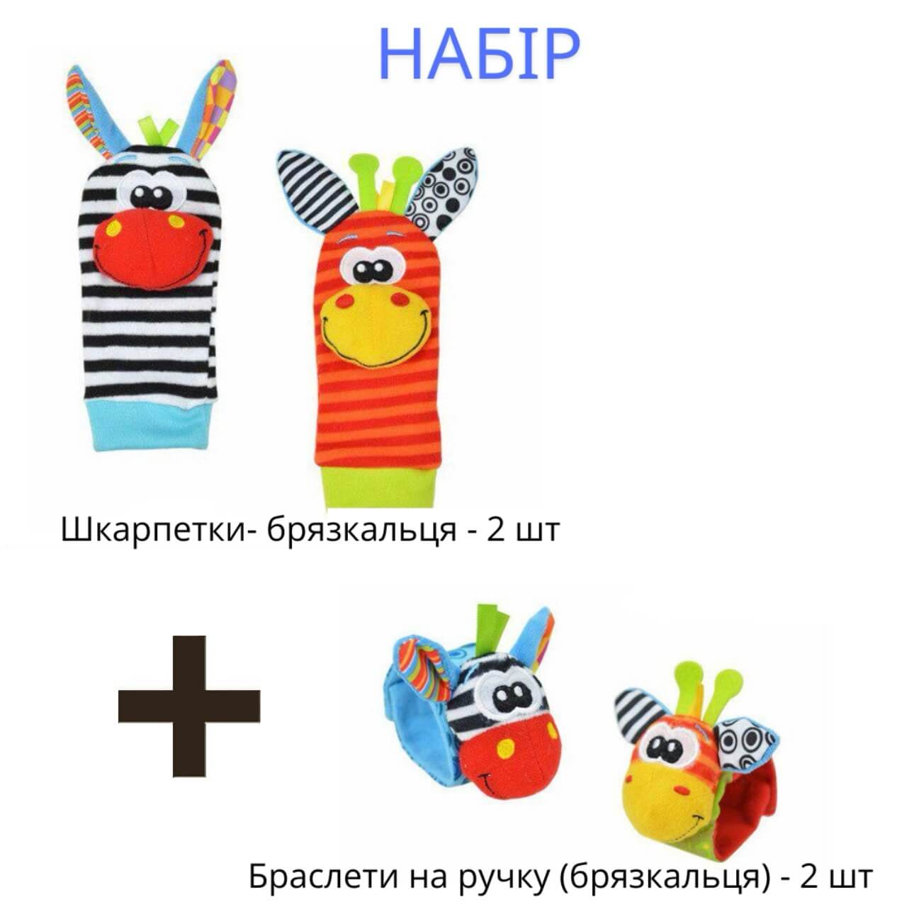 Носки и браслеты (черно-оранжевый) с погремушками (набор из 4 шт.)