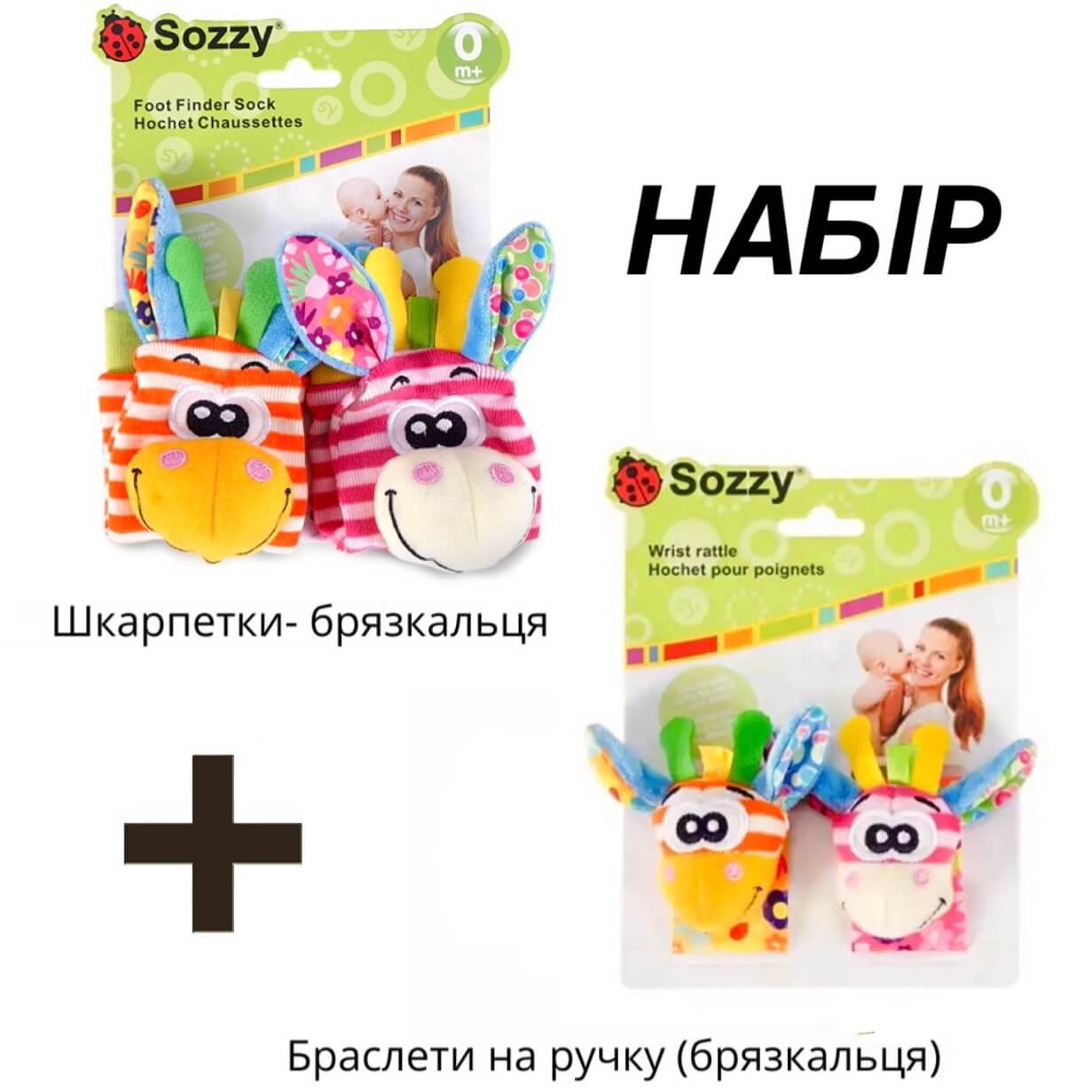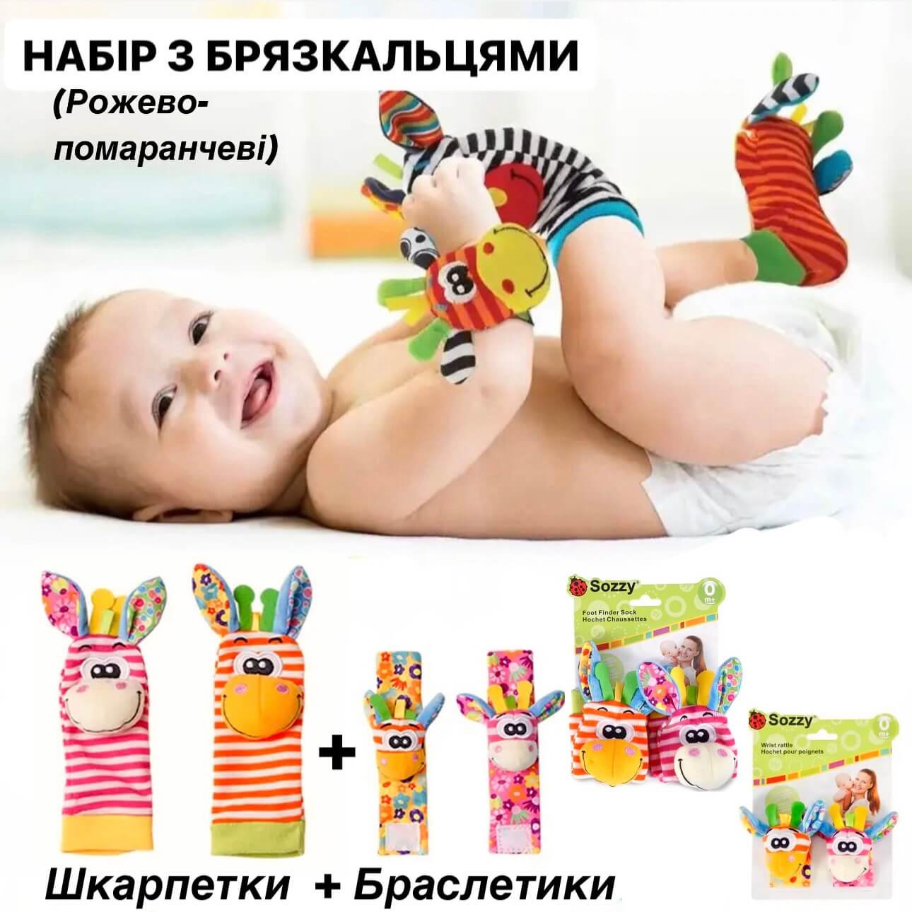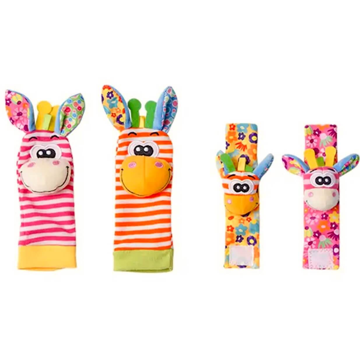Носки и браслеты (розово-оранжевый) с погремушками (набор из 4 шт.)