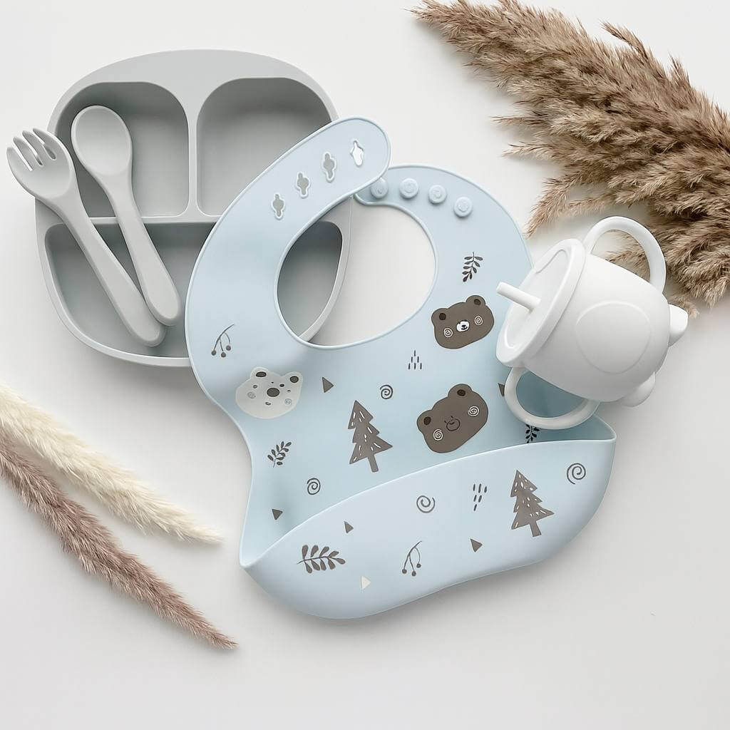 Силиконовый слюнявчик принт Ёлочка (беби блю)