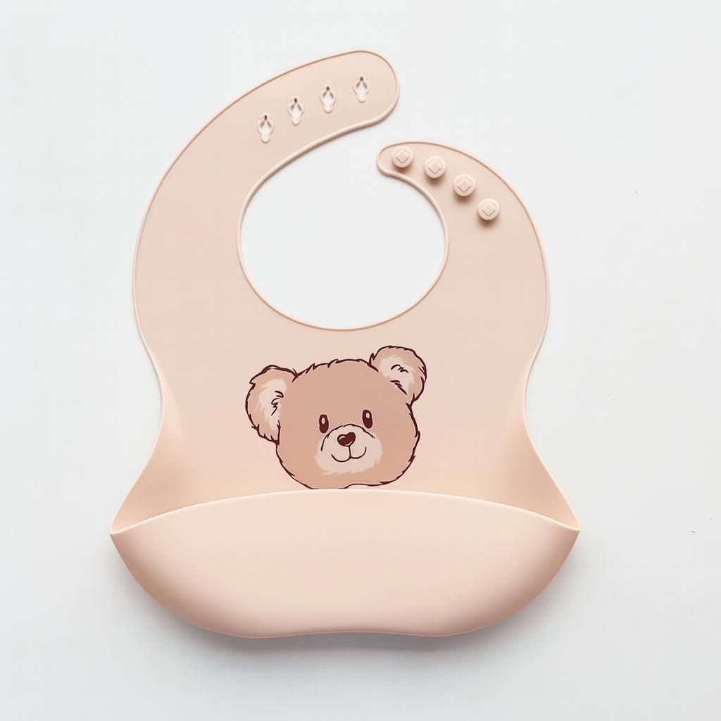 Силиконовый слюнявчик принт Мишка мордочка (бежевый)