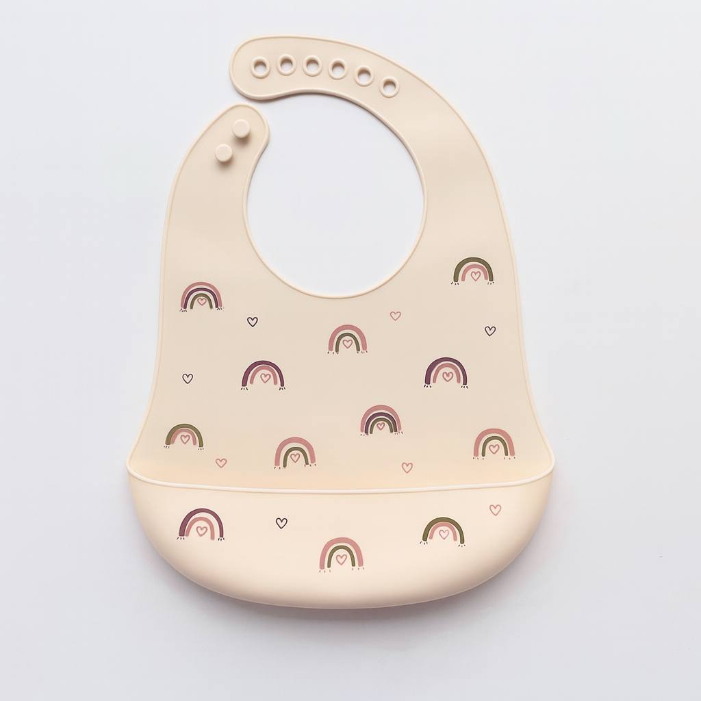 Силиконовый слюнявчик принт Радуга (бежевый)