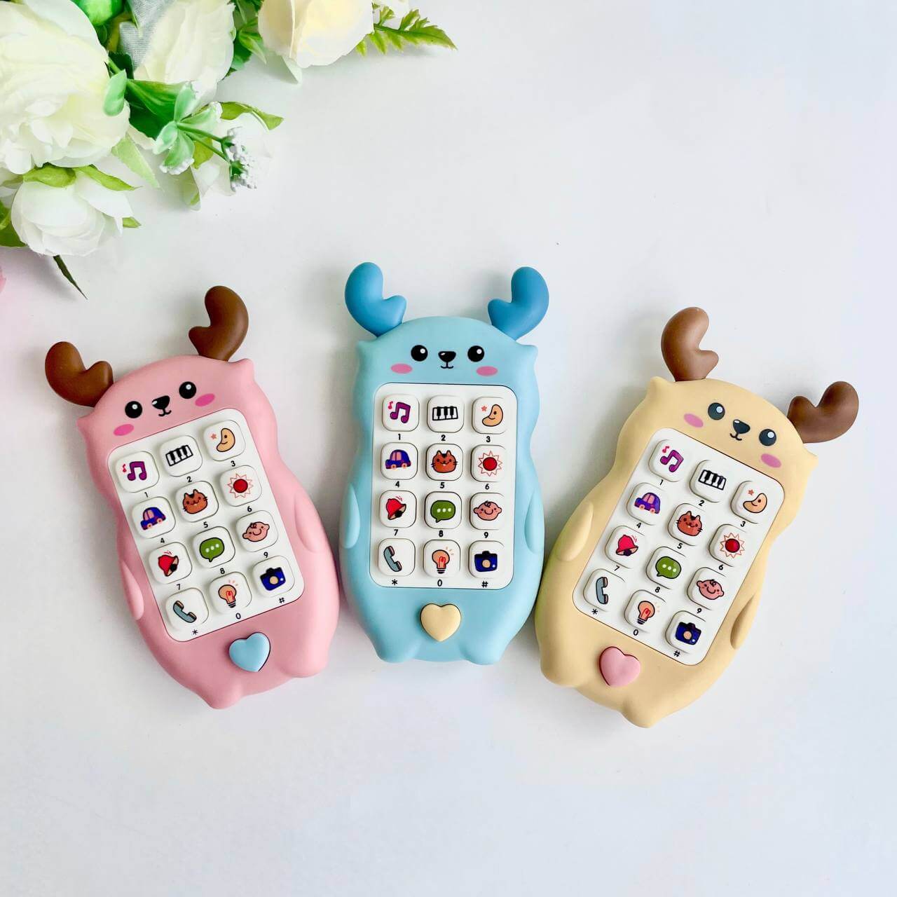 Детский телефон в форме Оленя – яркая и веселая игрушка для малышей. Воспроизводит разные мелодии, звуки животных и настоящие телефонные сигналы, что делает игру еще более интересной.