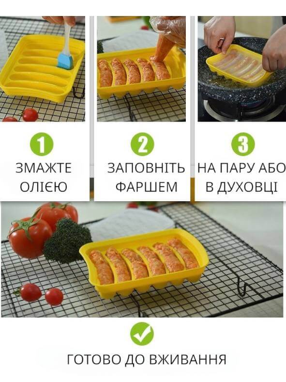 Силіконова форма для сосисок із кришкою — зручний кухонний аксесуар для швидкого та легкого приготування домашніх сосисок. Форма виготовлена з гнучкого харчового силікону, завдяки чому готові сосиски легко виймаються, не прилипають і зберігають акуратну форму.
