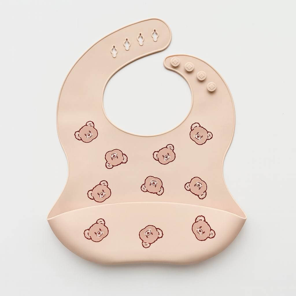 Силіконовий слюнявчик принт Ведмедики (бежевий)