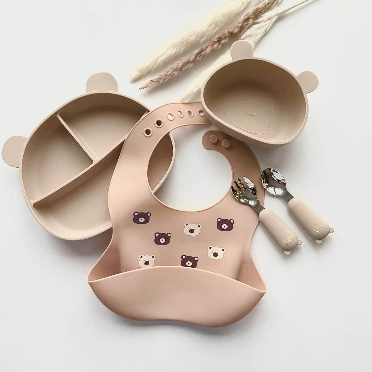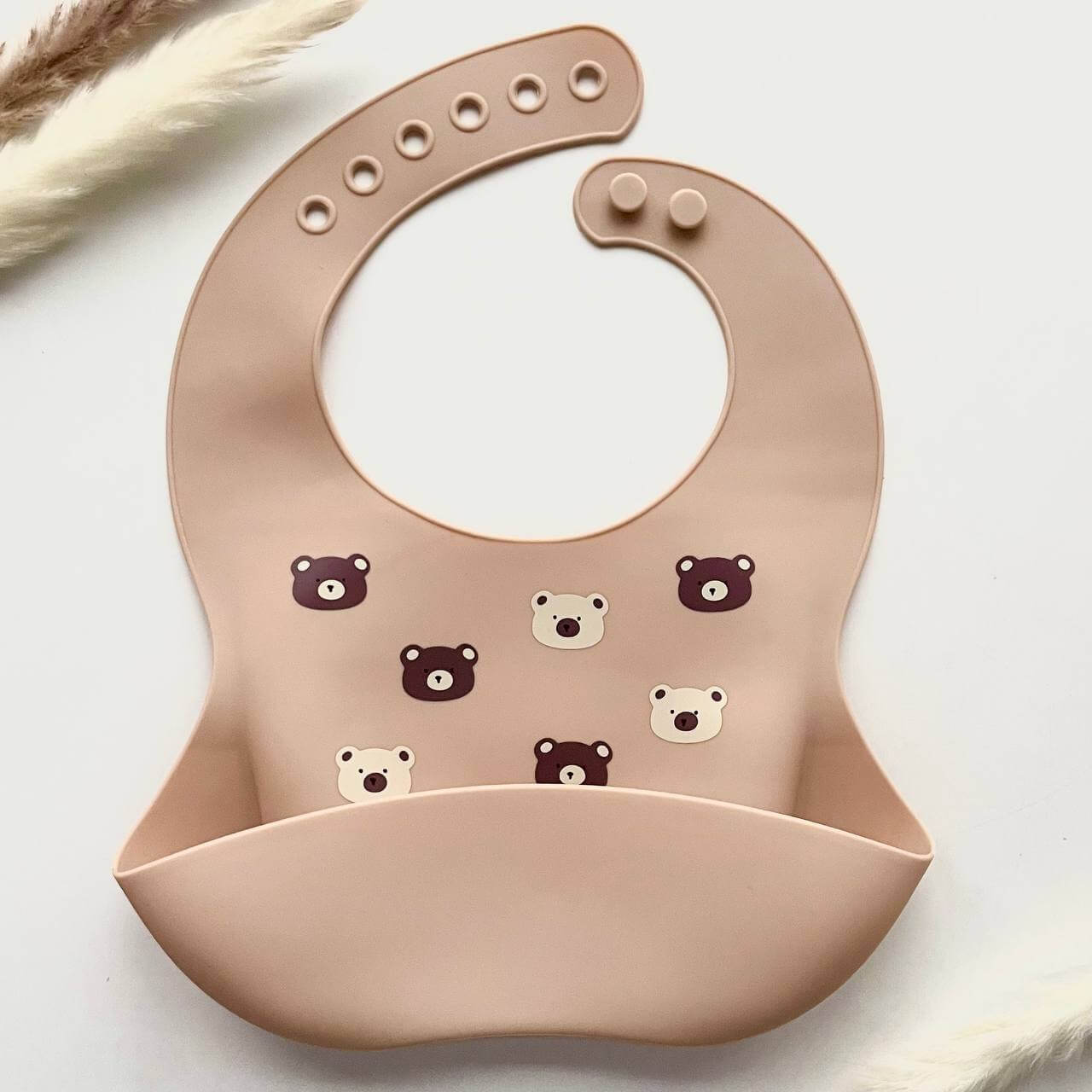 Силіконовий слюнявчик принт Ведмедики (вівсянка)
